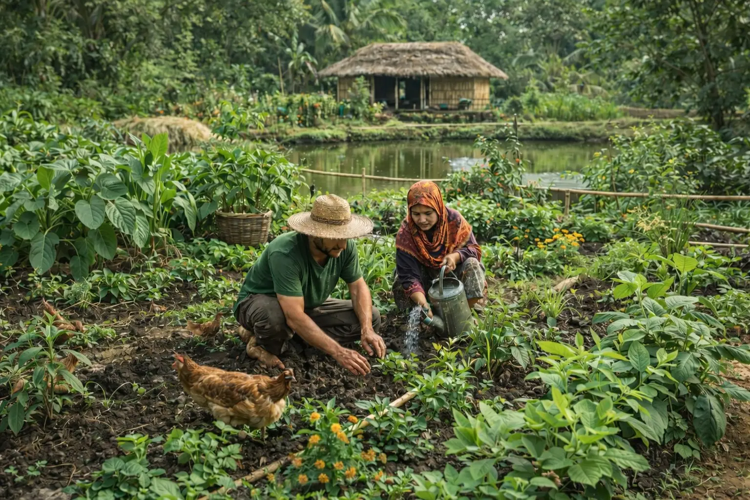 A faith and culture-rooted movement for ecological and cultural regeneration in Sylhet, Bangladesh. We cultivate inner peace (sukūn) and outward renewal (tajdīd) through living education, regenerative farming, and community stewardship — restoring the bond between soul, soil, and society.